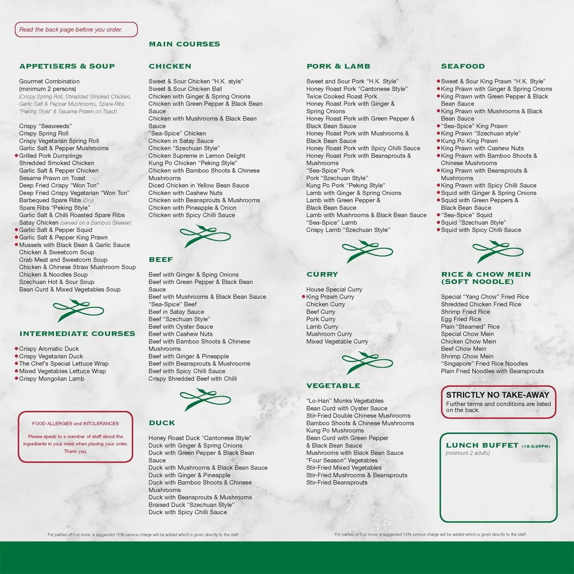 LUNCH BUFFET MENU (every day) LUNCH BUFFET MENU (every day, 12 -2pm)minimum 2 adults - child 11 years & under.excludes items with *Lunch limited £20.90 adult & £12 childrenLunch full buffet £24.90 adult & £13.90 children